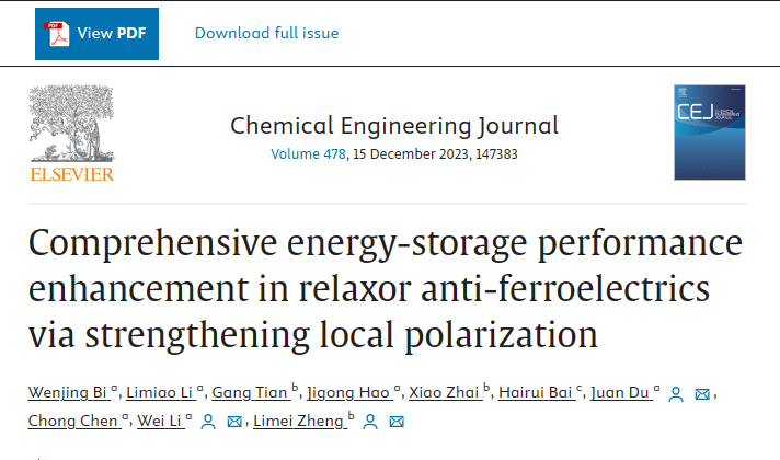 Chemical Engineering Journal |信息功能材料与器件团队在无铅储能陶瓷领域取得新进展