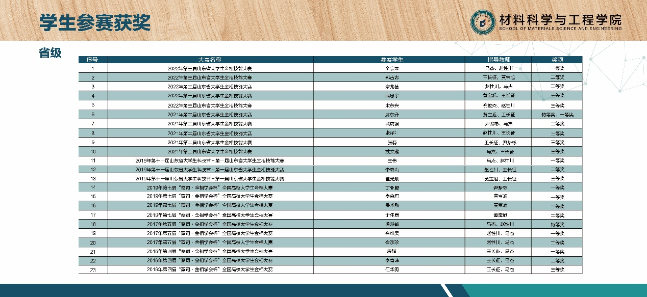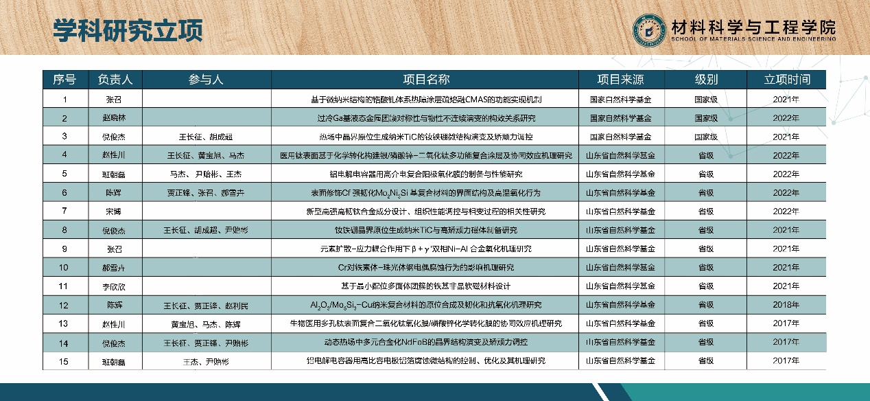 3.承担包括国家自然科学基金、山东省自然科学基金在内的各类科研课题30余项,发表SCI、EI收录论文200余篇,国家授权专利20余项,专业所在材料学科已经进入ESI全球前0.4%。