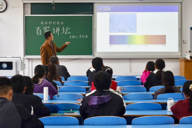 发光材料现已广泛应用于生产生活、医学、军事诸多领域,李怀勇老师从太阳和月亮出发,为同学们讲述光在不同环境所表现的强度,发光过程以其具体应用。随后,李老师通过小实验来向同学们展示光的具体传播过程,让同学进一步了解光在日常生活中的千变万化。