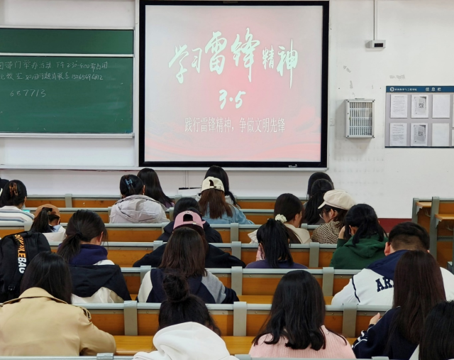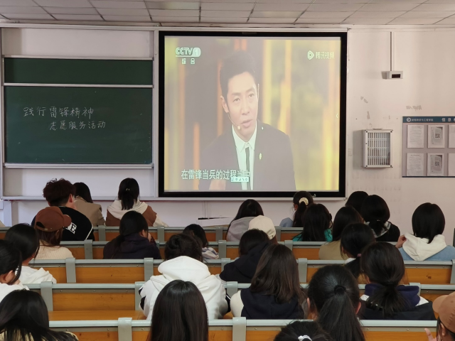 (同学们集中学习雷锋精神相关视频)