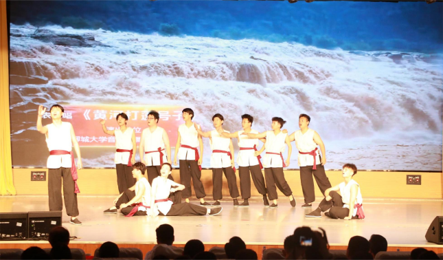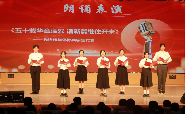 进入礼堂,典礼在雄壮的国歌声中启幕,主持人以庄重且严谨的语调宣读了本次获奖代表名单,颁奖仪式正式开始。仪式围绕bevictor1946韦德官网建校50周年以“尚学篇”“致远篇”“笃行篇”三个篇章集中表彰了2024年获得国家级省级和校级荣誉的员工先进个人和集体,并颁发证书。众位优秀员工代表神态庄重,步履稳健地走上颁奖台,眼神坚定且自信,展现出聊大学子应有的精神风貌。颁奖过程中,各篇章间穿插的音舞表演将典礼气氛推向高潮,打蓬号子气势雄浑、豪迈奔放,齐声朗诵表演饱含情感、真情流露,令人难以忘怀。
