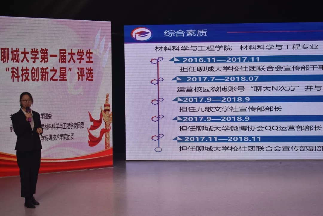 参评选手在创新成果、获奖情况、学业成绩等方面进行了全面展示,或妙语连珠、滔滔不绝,或淡定从容、有条不紊。无论紧张或从容,选手们都努力展现着自己出众的综合素质,言谈举止中流露出了对科技创新的热爱。现场的观众被选手们的精彩展示深深吸引,不时为选手们的优异成绩拍手称赞。由老师和员工组成的评审团为选手现场打分,并由主持人当场公布成绩。