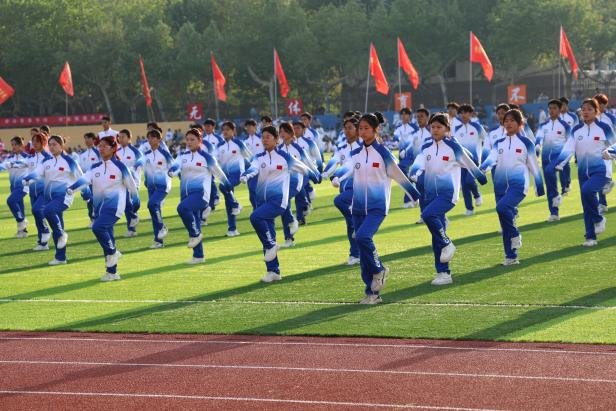 随着广播体操音乐响起,参赛队员迅速进入比赛状态。从伸展运动到整理运动,整套动作连贯流畅,节奏分明。伸展动作标准有力,展现出力量感;踢腿动作迅速利落,体现着动作精度;队列转换始终整齐划一,跳跃环节洋溢着青春气息。每个动作都经过反复练习,力求标准规范,团队配合默契有序,既体现了体育运动的严谨性,也展现了个人动作与集体协作的协调与统一。比赛过程中,队员目光专注,口号响亮,将日常训练成果转化为稳定发挥,赢得了现场观众的掌声和评委的认可。