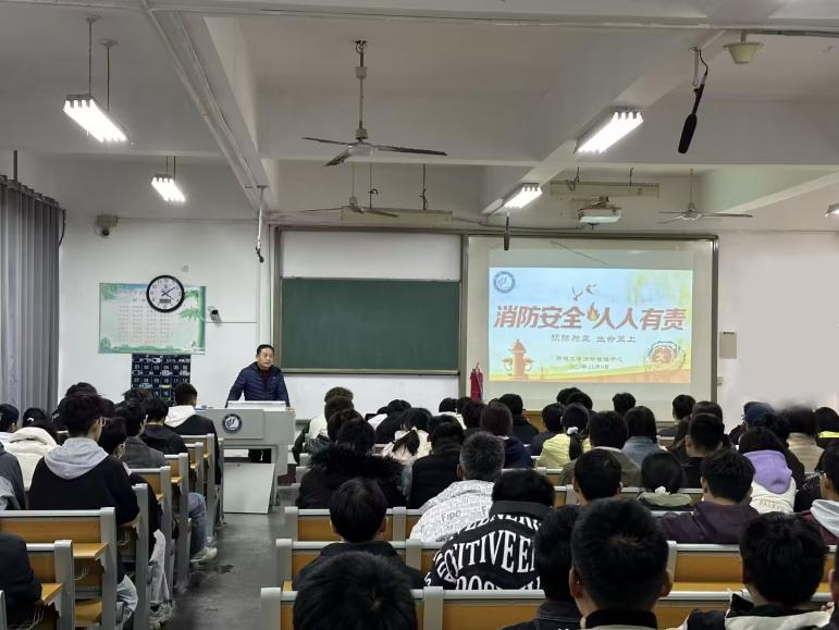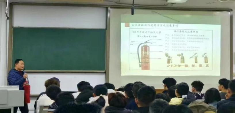 为加强校园消防安全管理,提高员工的安全意识,2023年11月17日,bevictor1946韦德官网于4#B304开展消防安全培训及仿真灭火器现场操作演练活动,特邀安全保卫处马国栋老师担任主讲,团委辅导员陆含老师和2023级全体新生参加本次活动。