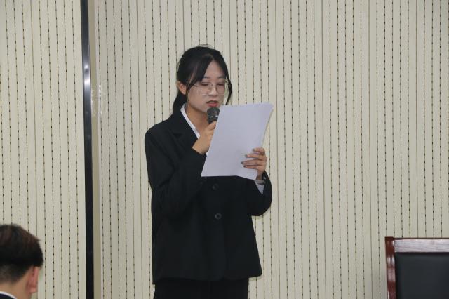 新一任员工会主席团成员代表邓新瑶作表态发言,她立足岗位承诺将以务实行动服务同学、推动员工组织工作提质增效,展现出新一届员工骨干的担当与决心。