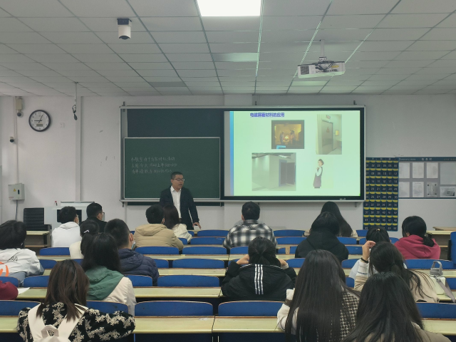 战老师展示了许多在制备柔性电磁屏蔽材料的实验时的数据和图片,列举了一些国内外有关该材料的实验数据,指出导电性能好的有机高分子材料尤其是石墨烯在柔性电磁屏蔽材料的制备中的重要性,并表明高分子材料在未来的发展前景十分辽阔。在师生互动环节,同学们积极参与,老师对同学们提出的问题作出解答,使同学们对新材料的认知度得到了大大的提高。