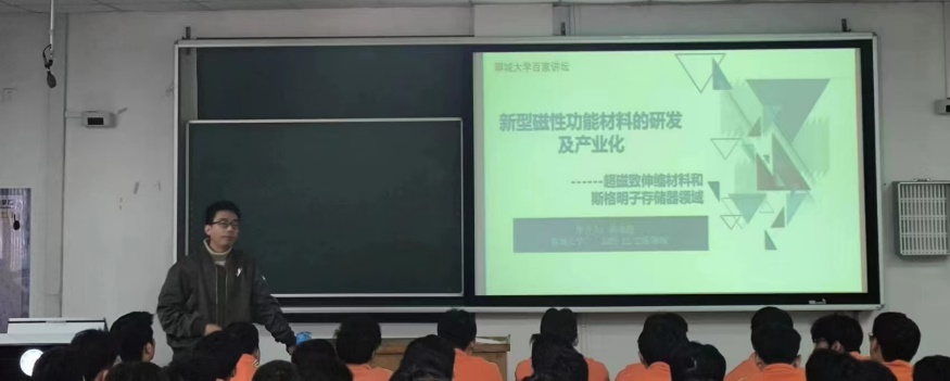 胡老师从普通伸缩材料对科技发展的重要性开始谈起,向同学们科普了新型磁性功能研发的技术发展历史,以此引出中国磁性材料研究现状。随后,胡老师向同学们讲解伸缩材料的结构与磁性功能的关系,加深了同学们对磁性材料相关技术了解。同时以我国主要的伸缩材料企业相关领域取得的成就为例,帮助同学们了解我国新型磁性材料发展趋势,鼓励同学们要打牢基础知识,关注科技发展。最后,胡老师通过讲述这种材料对当下科技发展的影响,明确了新型磁性功能材料的研发及产业化对技术创新发展带来的影响,在同学们心中种下了助力新材料发展的种子。