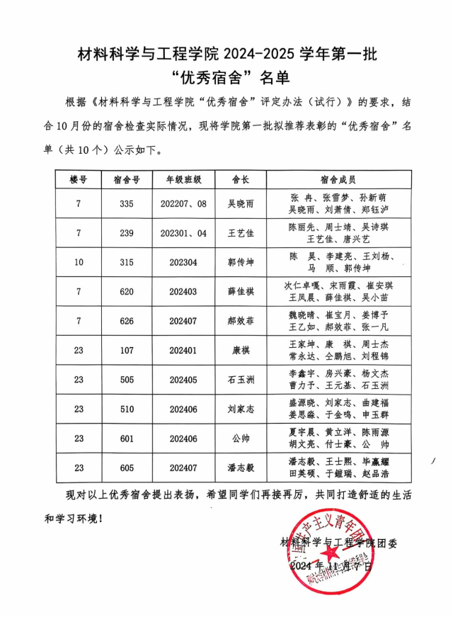 公司开展2024-2025学年第一批“优秀宿舍”评选活动