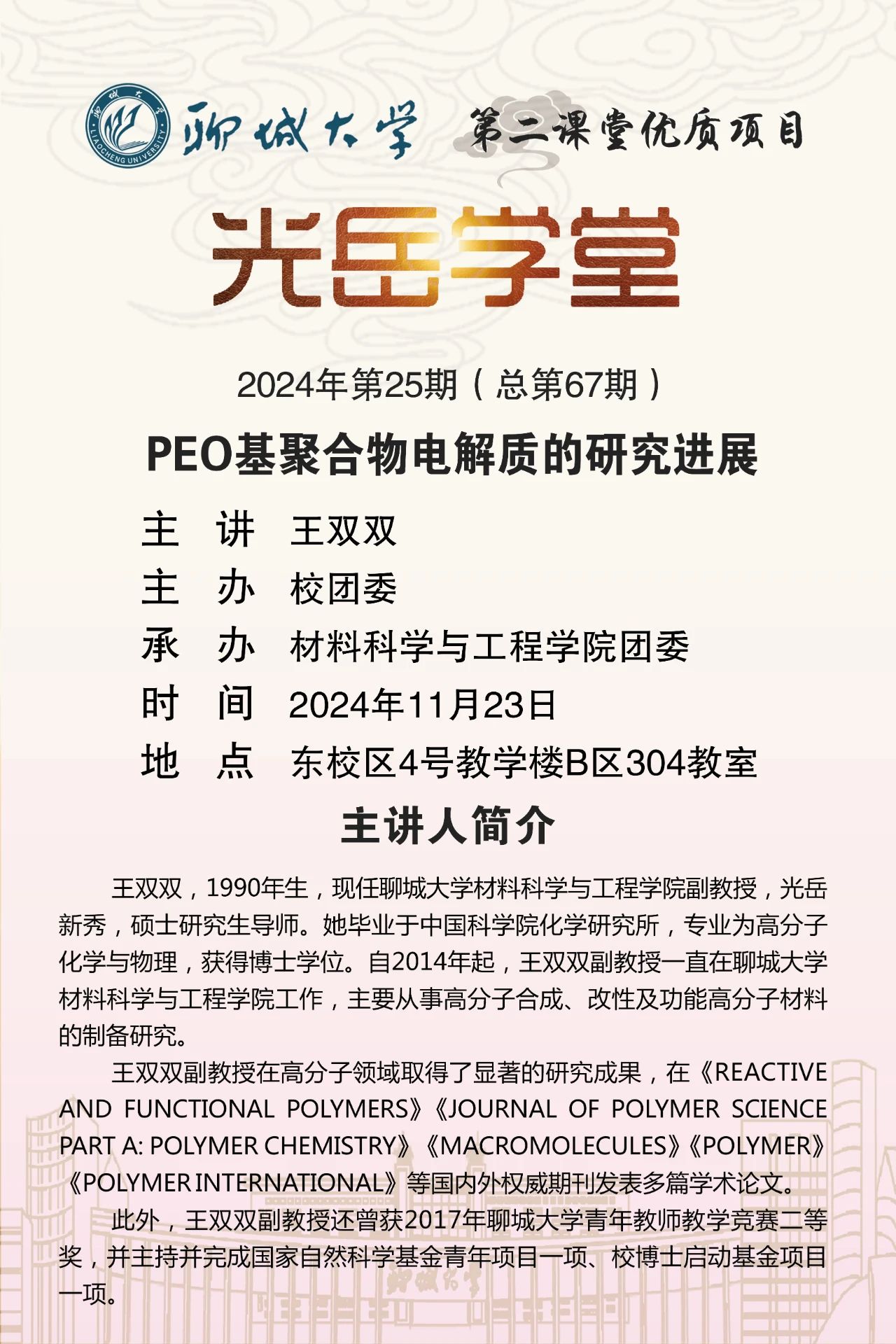 为引导员工深入了解材料专业,拓宽学术视野, 2024年11月23日,由bevictor1946韦德官网校团委主办、bevictor1946韦德官网承办的“光岳讲堂”活动于东校区4#B304举行,本次活动特邀bevictor1946韦德官网王双双副教授担任主讲嘉宾。