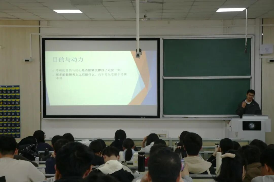 交流会上,赵丽杰同学结合自身考研经历,系统梳理了备考各环节的注意事项。同时,针对新能源材料与器件专业的学科特性,他着重剖析了专业核心课程的高效学习策略,深入阐释了目标院校选择的关键要素。通过生动详实地讲解有效调动了同学们的备考积极性,并鼓励同学们以持之以恒的意志品质来突破学习瓶颈,以科学有效的方法应对备考过程中的各类挑战。