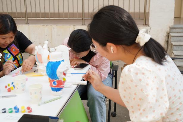 活动伊始,工作人员为每位参与者分发了石膏娃娃、颜料、画笔和调色盘等绘画工具。在自由创作环节中,同学们充分发挥想象力和创造力,用色彩和线条为石膏娃娃赋予独特的生命力。有的作品充满童趣,有的则寓意深刻,每一件作品都展现了参与者内心的情感与思考。创作结束后,同学们将完成的作品统一放置在展示桌上,形成了一道亮丽的艺术风景线。活动还特别设置了分享环节,邀请部分参与者讲述作品的创作思路、寓意以及在绘画过程中的感受和体验。