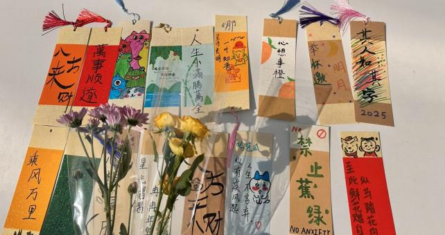 活动现场,同学们充分发挥想象力,利用彩纸、画笔、贴纸等材料,精心制作独具个性的书签。有的同学将书签裁剪成星星、爱心等形状,有的则绘制象征希望与勇气的图案,还有同学从名言警句卡片中选取励志语句,粘贴在书签上,赋予其深刻的心理能量。完成制作后,参与者依次上台分享作品的设计灵感,并讲述所选名言对自己的激励意义。现场氛围轻松愉悦,同学们在互动中收获了快乐与成长。