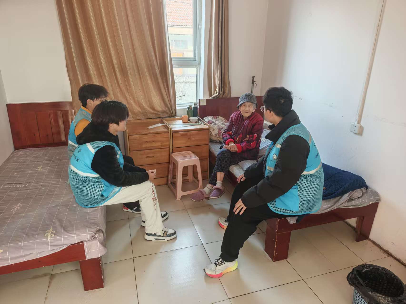 活动现场,志愿者们分工有序,情意浓浓。他们耐心地陪老人们拉家常,细致询问他们的身体状况和生活情况,聆听他们讲述往昔岁月与人生智慧。志愿者们还主动拿起清洁工具,帮助老人整理房间、打扫卫生,用实际行动改善老人的居住环境。此外,志愿者们还为老人们唱歌,老人们的脸上洋溢着幸福的笑容,活动现场充满了欢声笑语。