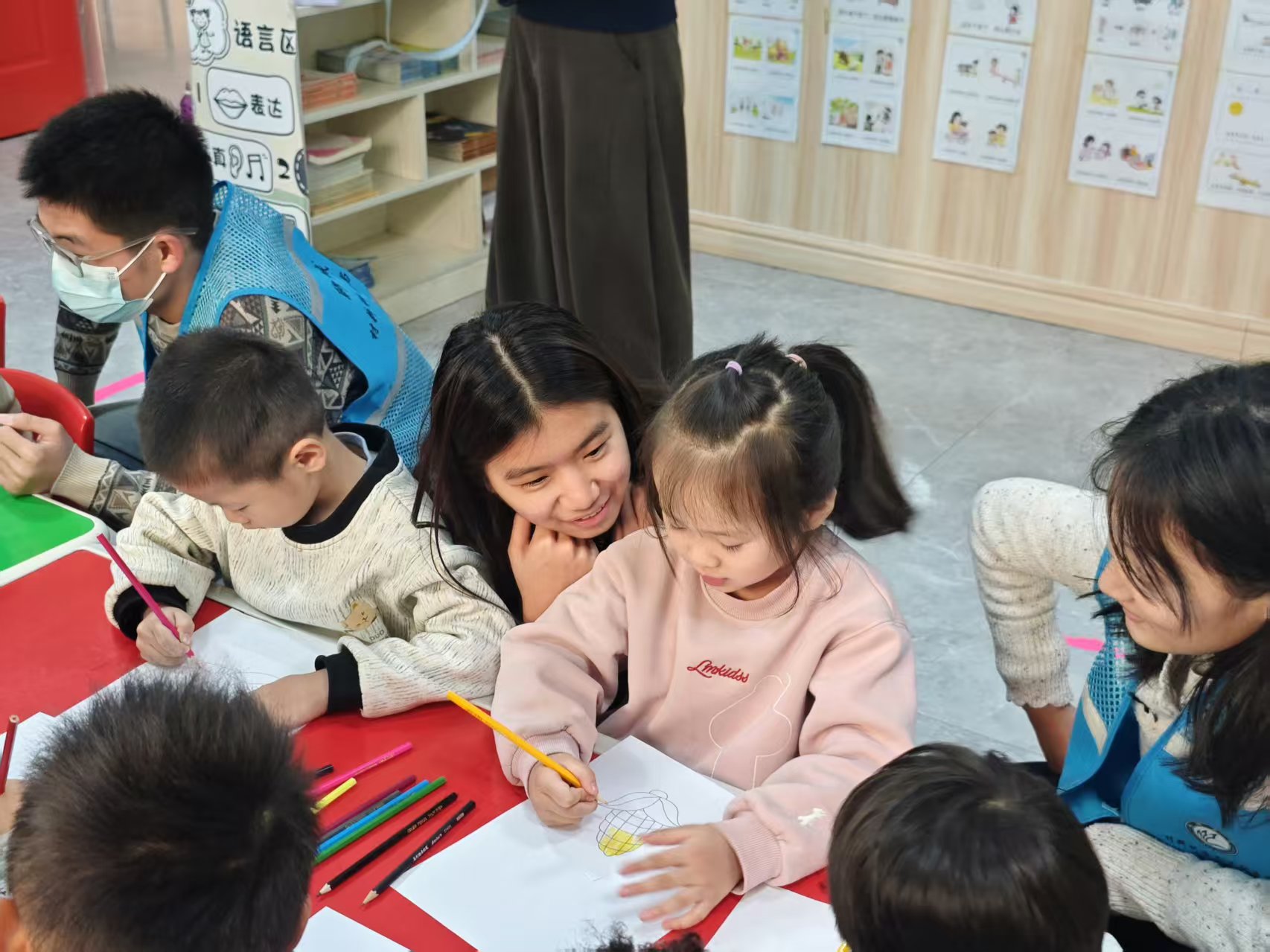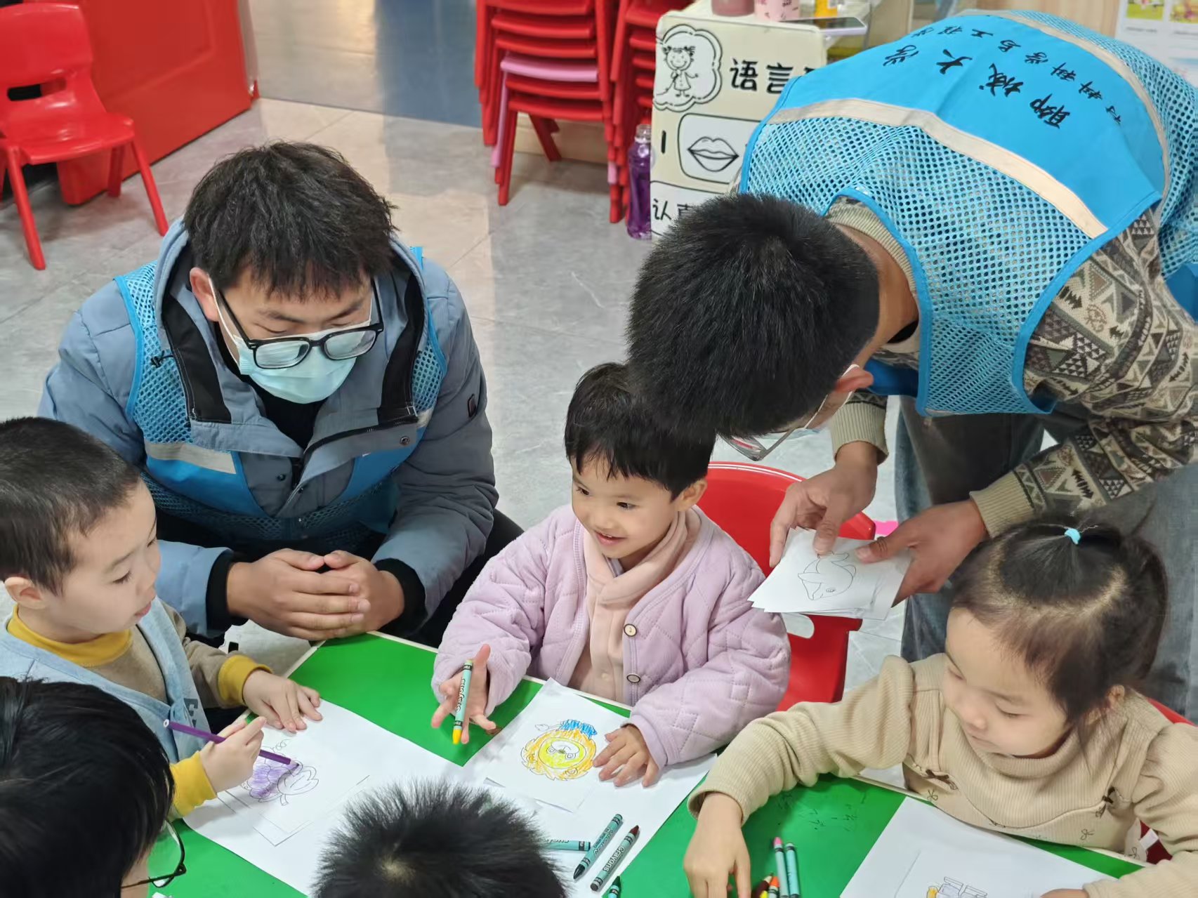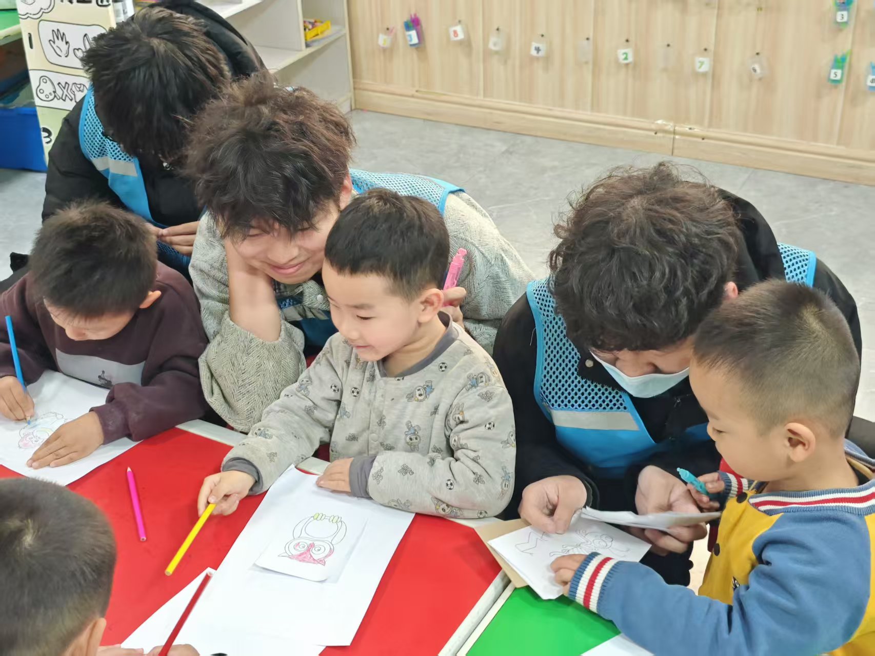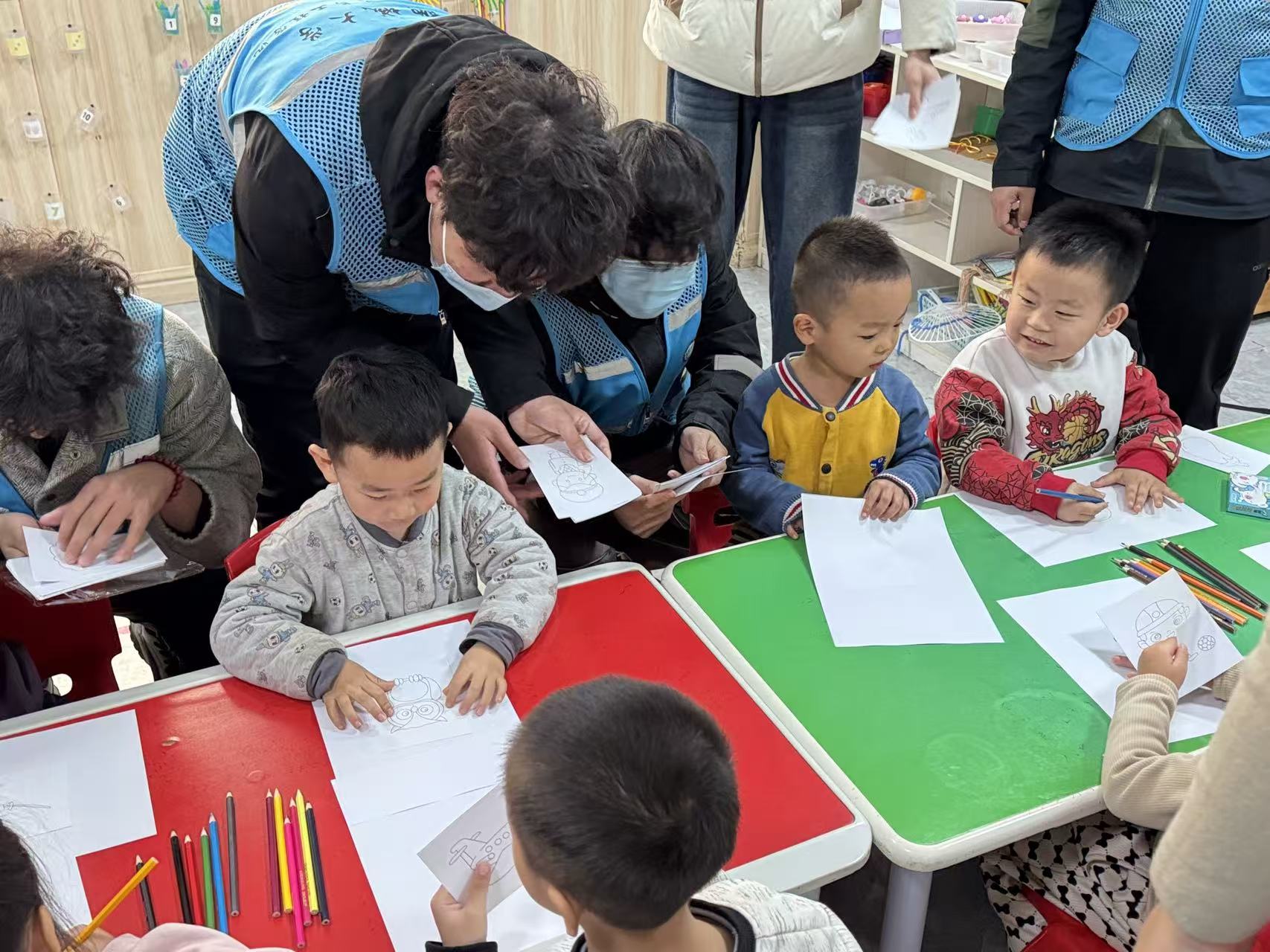 多彩的手工互动环节成为本次活动的核心亮点。在涂色画画环节,志愿者们为小朋友们分发了色彩丰富的涂色卡与画笔,鼓励孩子们用色彩描绘心中的美好世界;趣味折纸环节里,志愿者们耐心手把手指导小朋友们折叠,孩子们专注模仿;折星星比赛更是将活动推向高潮,小朋友们纷纷拿起彩纸动手折叠,最终折星数量最多的小朋友收获了精心准备的小礼物,现场欢呼声与掌声此起彼伏。