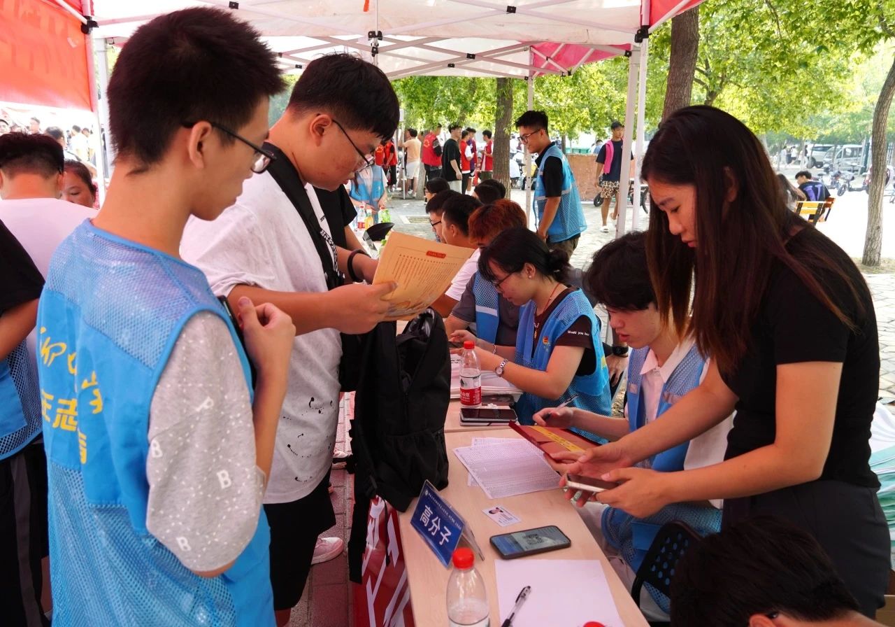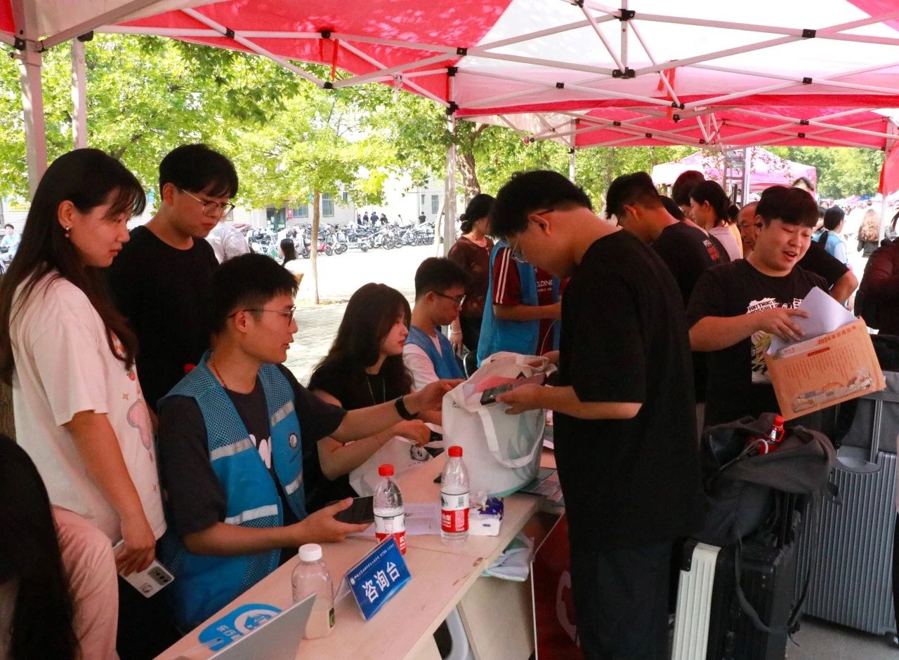 迎新现场,志愿者们早早到达公司服务点,有条不紊地展开各项工作,核实信息、查验证件、完成登记等环节高效推进,并在此过程中热心解答新生及家长的疑惑,以真情传递公司“博学明德,立志成才”的精神风貌。