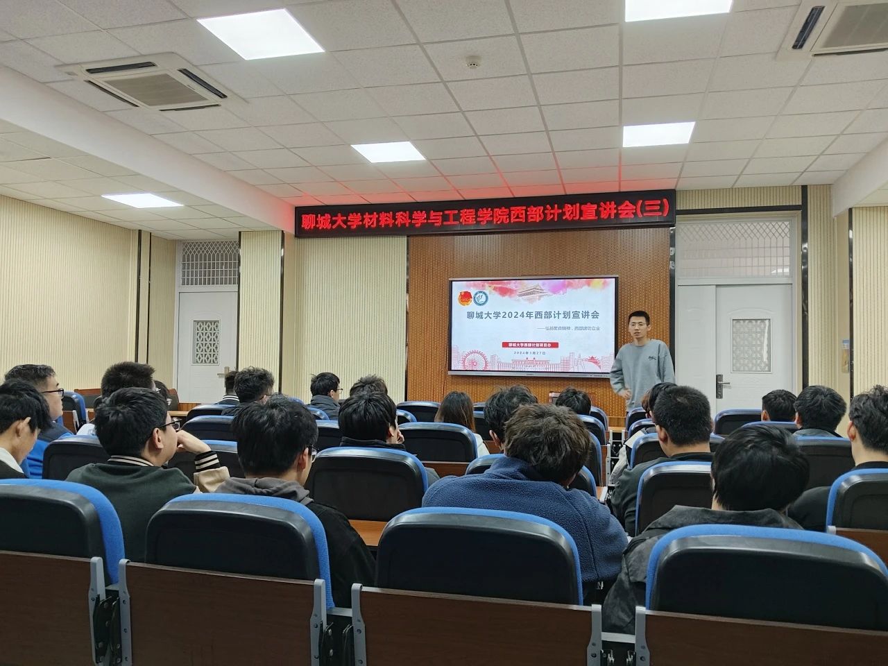 2024年3月27日,公司召开2024年西部计划第三期宣讲会。齐亚伟老师为2020级材科和高分子专业未落实就业的同学们解读西部计划政策,播放西部计划宣传片和西部计划志愿者故事视频。