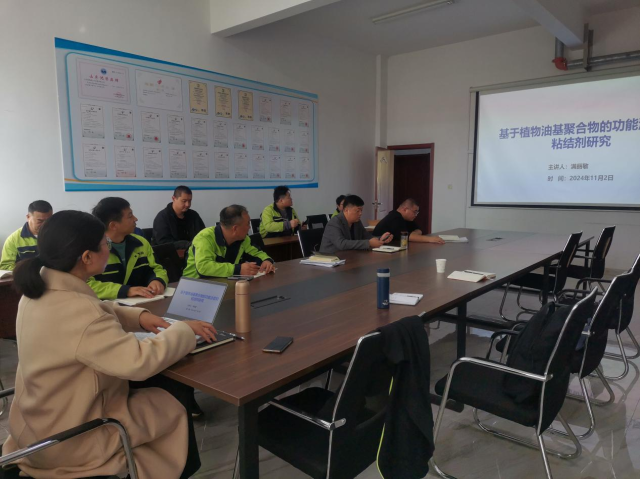 随后,战艳虎和满丽敏两位老师分别为企业技术人员开展了功能塑料与胶黏剂等方面的培训。两位老师通过深入浅出的教学方法和浅显易懂的教学语言,让格润公司的技术人员能够更好地掌握苦涩的专业知识。