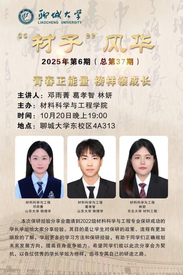 “材子”风华—材料科学与工程专业 保研经验交流会